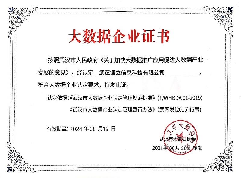 祝賀鐳立科技通過武漢市“大數(shù)據(jù)企業(yè)”認(rèn)定