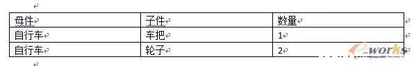 BOM數(shù)據(jù)表可以有下面的表示方式,最基本的BOM表,僅僅包含3個字段,母件,子件和數(shù)量。例如