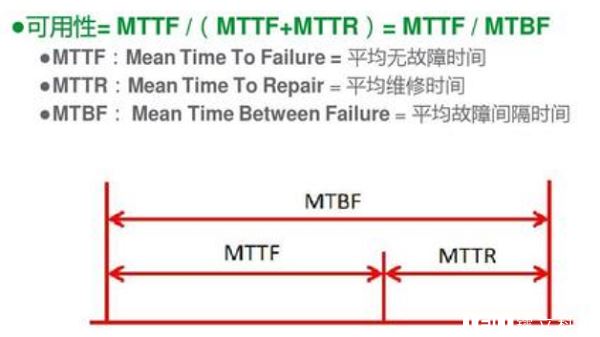 MTBF(Mean Time Between Failures ,平均故障間隔時間)定義為,失效或維護中所需要的平均時間,包括故障時間以及檢測和維護設備的時間。對于一個簡單的可維護的元件,MTBF = MTTF + MTTR。因為MTTR通常遠小于MTTF,所以MTBF近似等于MTTF,通常由MTTF替代。MTBF用于可維護性和不可維護的系統(tǒng),MTBF越長表示可靠性越高正確工作能力越強。