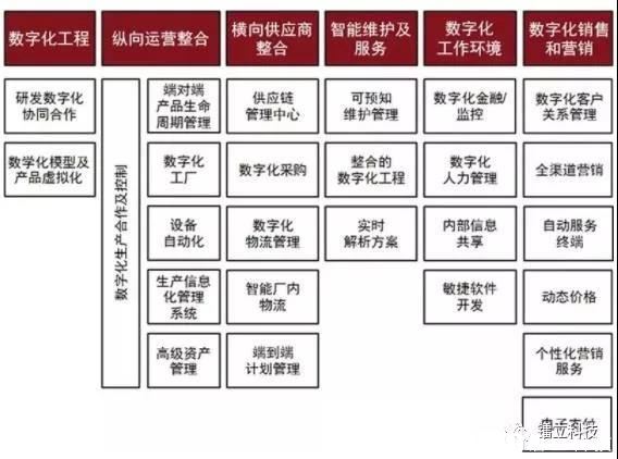 研發(fā)工程端的工業(yè)4.0 應(yīng)用包括數(shù)字化協(xié)同合作、數(shù)字化模型和產(chǎn)品虛擬化,通過運用信息化技術(shù),可以大大縮短研發(fā)周期、減少研發(fā)風(fēng)險、提高創(chuàng)新效率。供應(yīng)鏈管理主要從縱向,即產(chǎn)品生命周期管理,以及橫向,即供應(yīng)商整合管理兩個角度考慮工業(yè)4.0 的應(yīng)用,應(yīng)用層面非常廣泛,包括現(xiàn)在國內(nèi)較熟悉的智能工廠、智能供應(yīng)鏈、生產(chǎn)信息化管理系統(tǒng)等,可以幫助企業(yè)提升整個供應(yīng)鏈的效率,降低成本,以及規(guī)范化管理上游端供應(yīng)商質(zhì)量。再往后端推移,工業(yè)4.0 技術(shù)也可被廣泛應(yīng)用于設(shè)備智能維護(hù)及實時服務(wù)、打造數(shù)字化工作環(huán)境,以及運用數(shù)字化技術(shù)手段提高營銷效率,提供更優(yōu)質(zhì)的銷售及售后服務(wù)等。