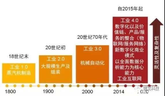 德國“工業(yè)4.0”、美國“第三次工業(yè)革命”、中國“制造業(yè)2025”,世界各國紛紛提出新一代制造理念,主要是為了指導(dǎo)工業(yè)制造業(yè)的發(fā)展,在數(shù)字化、智能化、網(wǎng)絡(luò)化的全球大環(huán)境下,拉動傳統(tǒng)制造往智能制造方向升級,從而滿足未來市場更快速、更個性化的需求響應(yīng),并實現(xiàn)更低的制造成本(見下圖“工業(yè)4.0 的演進(jìn)過程”)。