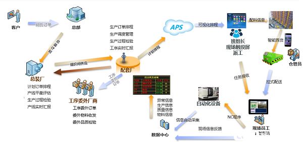 通過建立以集團業(yè)務(wù)為核心的大數(shù)據(jù)指揮中心,通過各種信息化管理控制平臺(ERP、SRM、MES、WMS)將集團指令下發(fā)各配套工廠,統(tǒng)一完成多工廠計劃、物料、工序的協(xié)同;通過智能終端、現(xiàn)場看板、現(xiàn)場設(shè)備信息自動采集實現(xiàn)車間作業(yè)現(xiàn)場的數(shù)字化、透明化管理。完成了在線質(zhì)量控制、實時生產(chǎn)狀態(tài)分析,生產(chǎn)過程的完整追溯等目標(biāo)。從而指導(dǎo)管理者科學(xué)的物料規(guī)劃與控制,科學(xué)的設(shè)備資源利用打造智能工廠,最終達到成本削減、生產(chǎn)效能提升和品質(zhì)保證的目的。